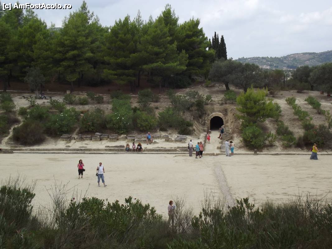 [P19] Stadionul din Nemea: tunelul de acces şi gradena oficială surprinse de pe dealul din faţă