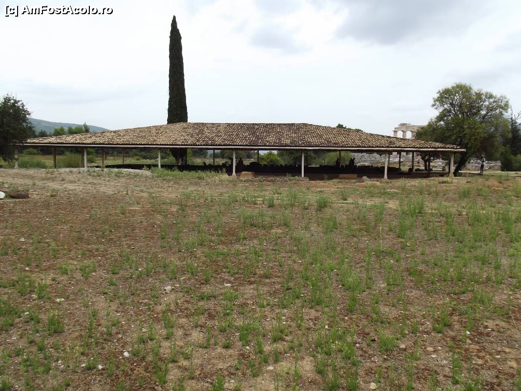 [P20] Termele de la Nemea sub acoperişul protector. În dreapta se văd coloanele Templului lui Zeus