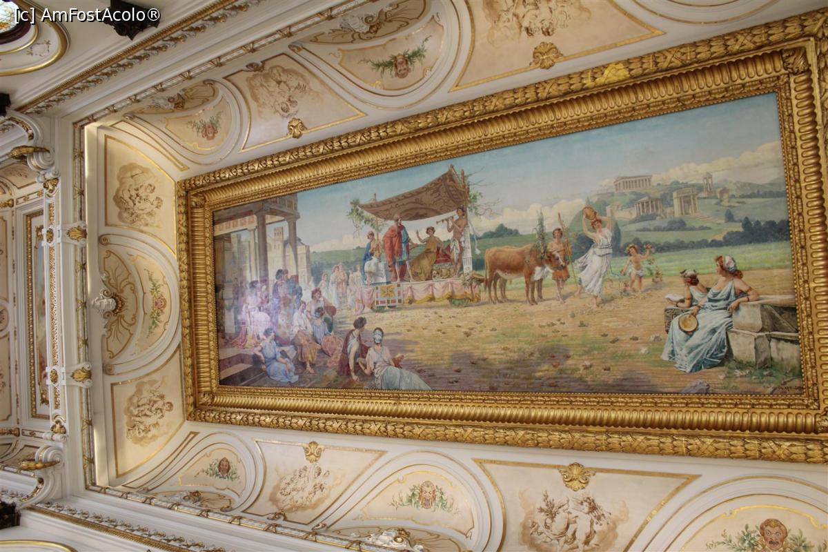 [P21] Sao Paulo, Teatro Municipal, Sala Nobiliară, tavanul, cu stucatură cu ornamente aurii, picturi delicate