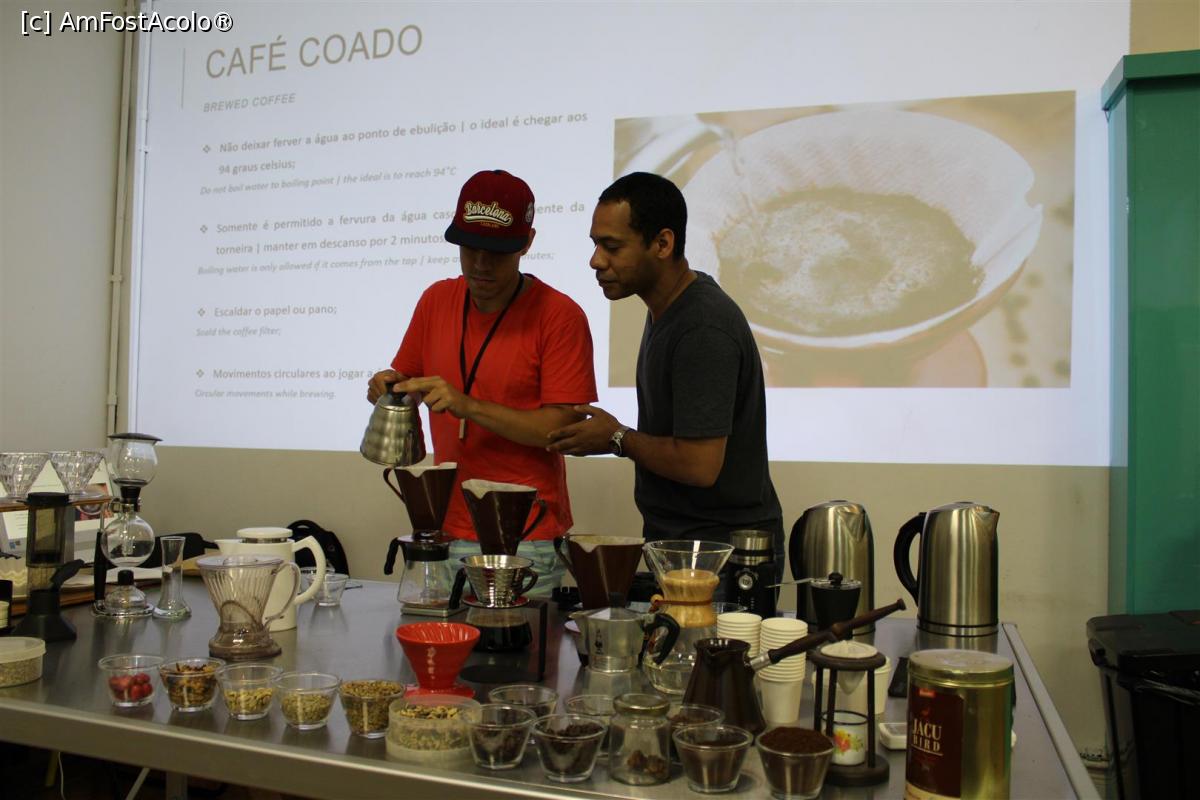 [P30] Santos, Museu do Cafe Brasileiro, Sala de Degustação de Café, tânărul nostru ghid prepară tradițional cafeaua