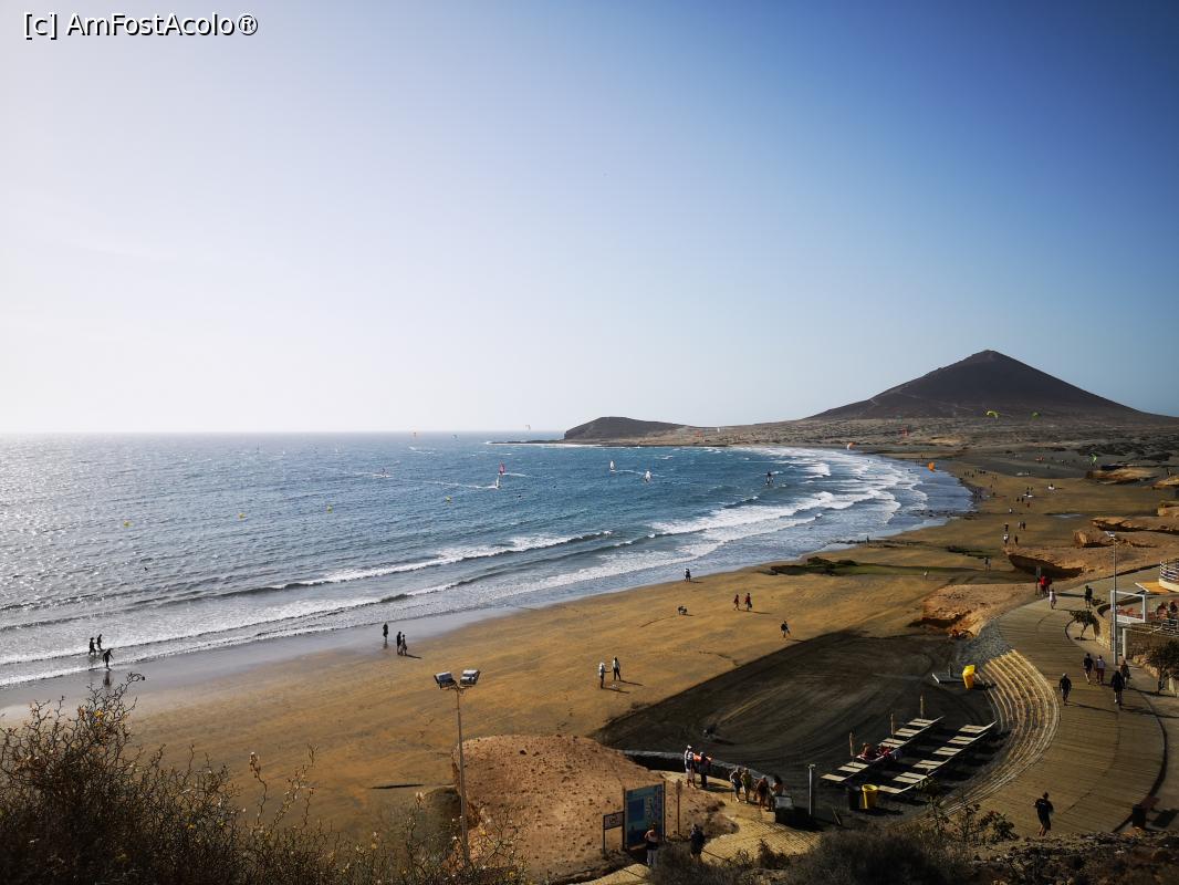 [P24] Playa del Medano (raiul surferilor!) și, pe fundal, Muntele Roșu