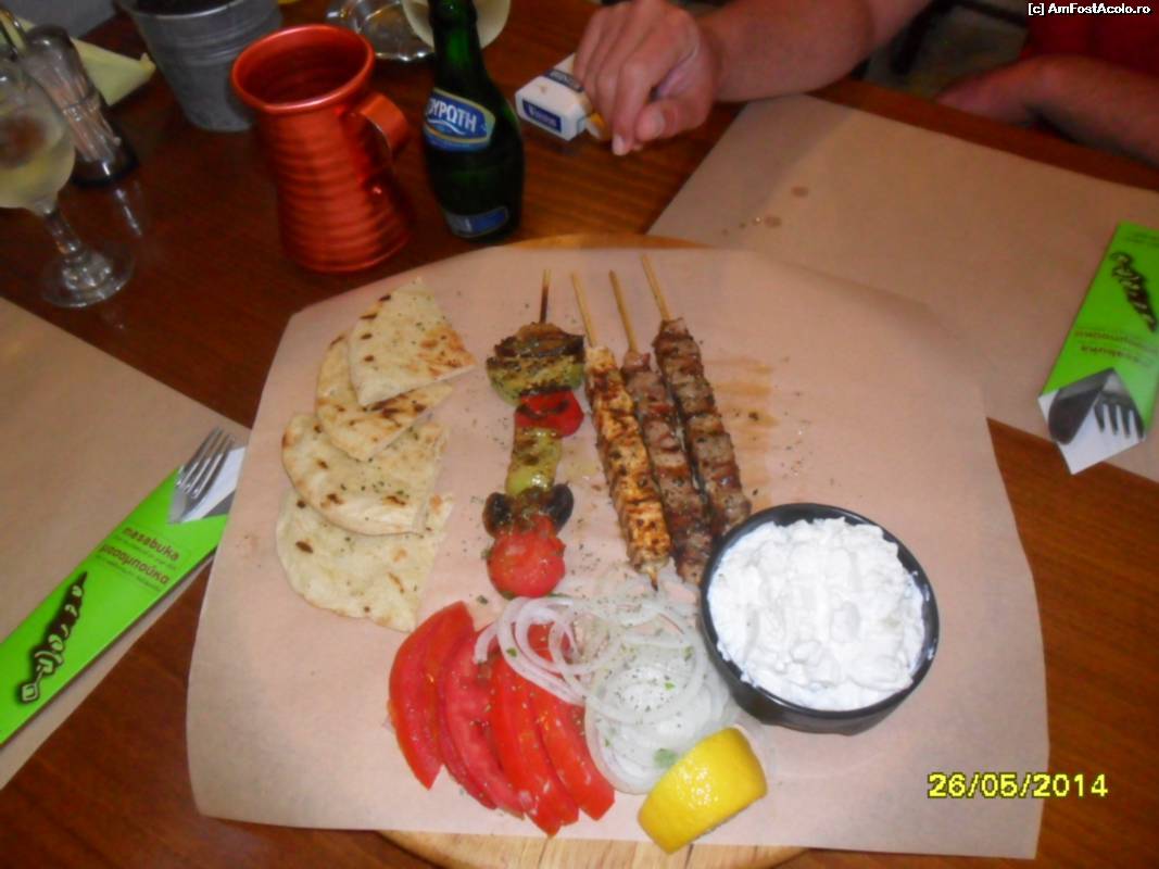 [P14] La Massa-Buca mini frigarui (la 1e bc.) cu rosii, ceapa, lamaie incluse, sos tzatziki, si mini pita.