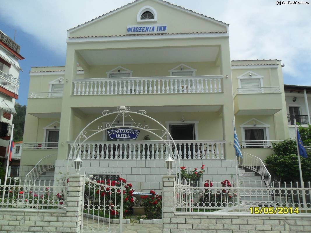 [P01] Hotel Philoxenia 3* (camere mici dar curate, lenjeria se schimba la 3 zile; mini-frifider, balcon cu masuta si scaune wi-fi, baie cu dus. foen, piscina cu sezlonguri gratis pt. cei cazati aici.