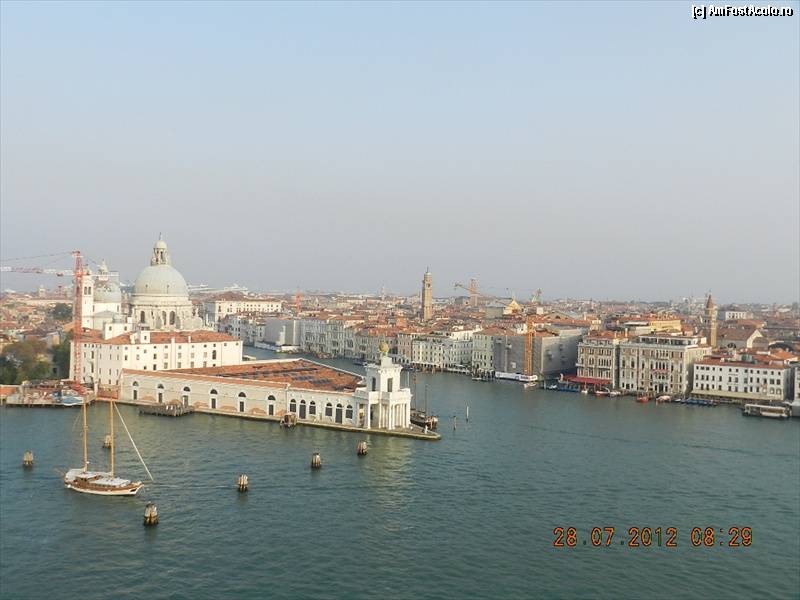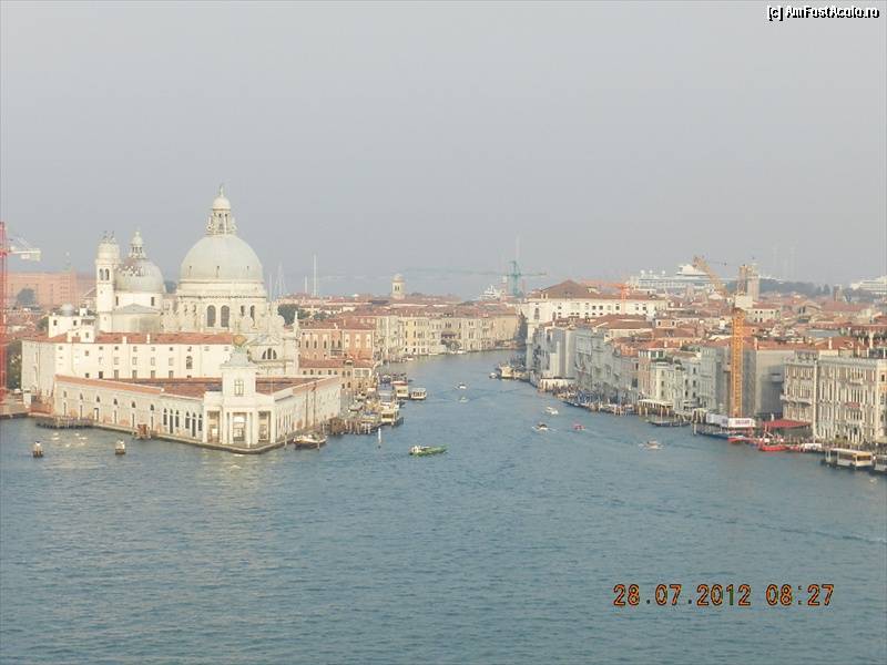 [P18] Intrarea pe Marele Canal, de langa Piazza San Marco, cu Biserica La Salute, in stanga. Mai in stanga e canalul La Giudecca. In fundal se vede o nava de croaziera, ancorata in Statione Marittime.