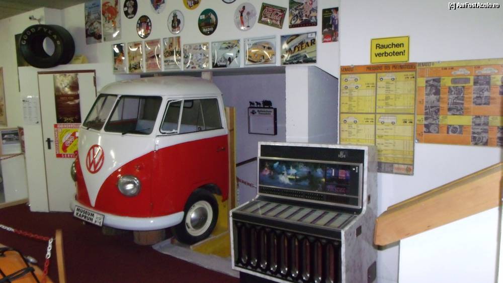 [P24] Kaprun - Fahrzeugmuseum Helmut Vötter, o jum'ate de van VW, un tonomat, postere, afişe tematice.