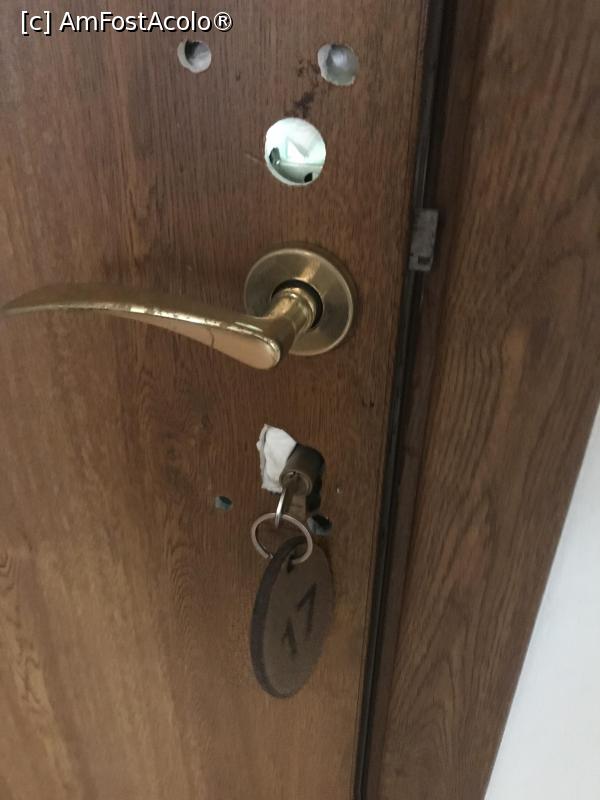 [P01] Usa nu avea încuietoare și găurile erau astupate cu dop de hârtie. Usa nu prezintă încredere la închidere.