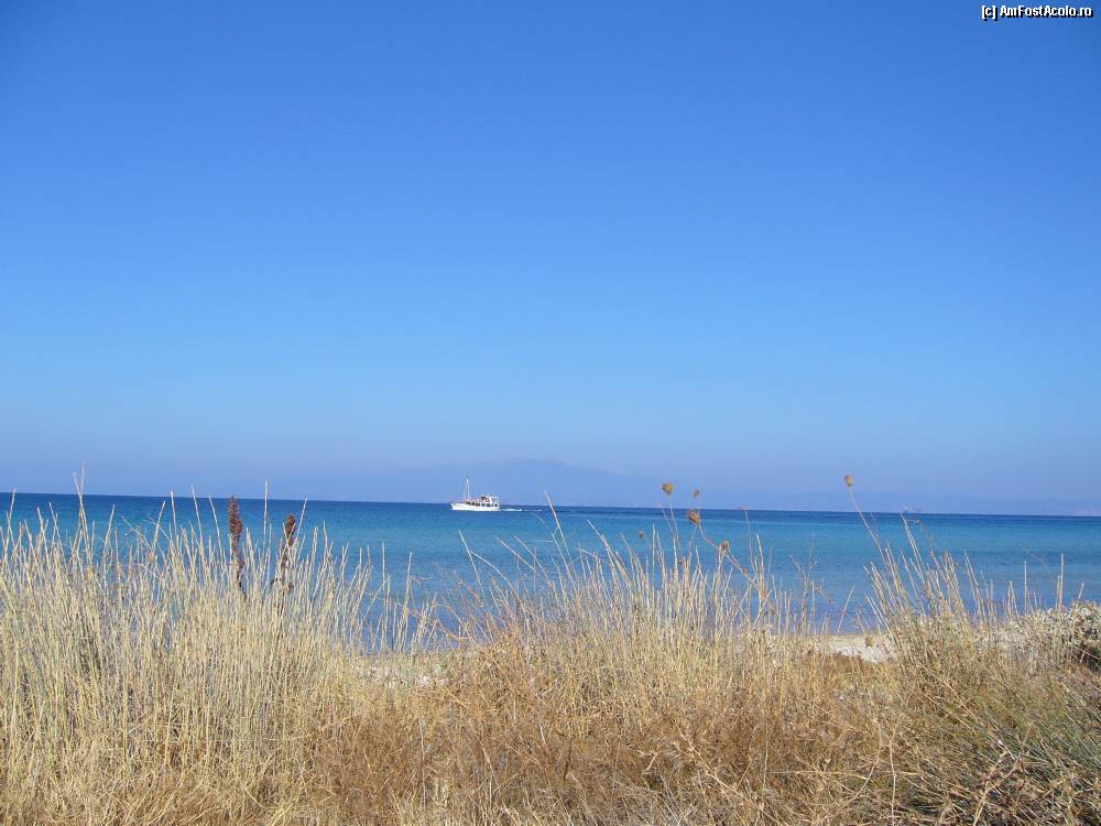 [P04] Plaja pustie din zona Skala Prinos, in departare de vede vaporasul care face turul insulei.