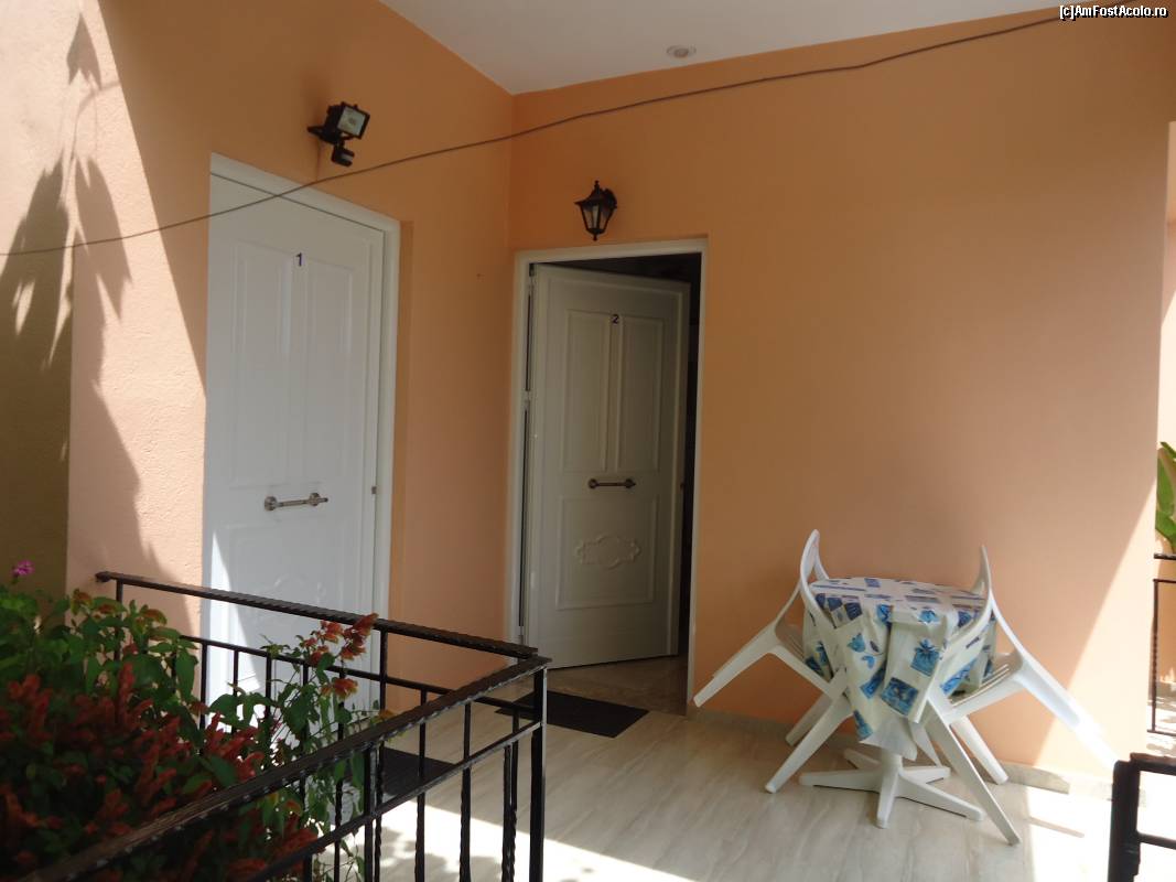 [P12] terasa de la intrarea în cameră şi măsuţa pe care găseam legume proaspete şi lămâi dimineaţa