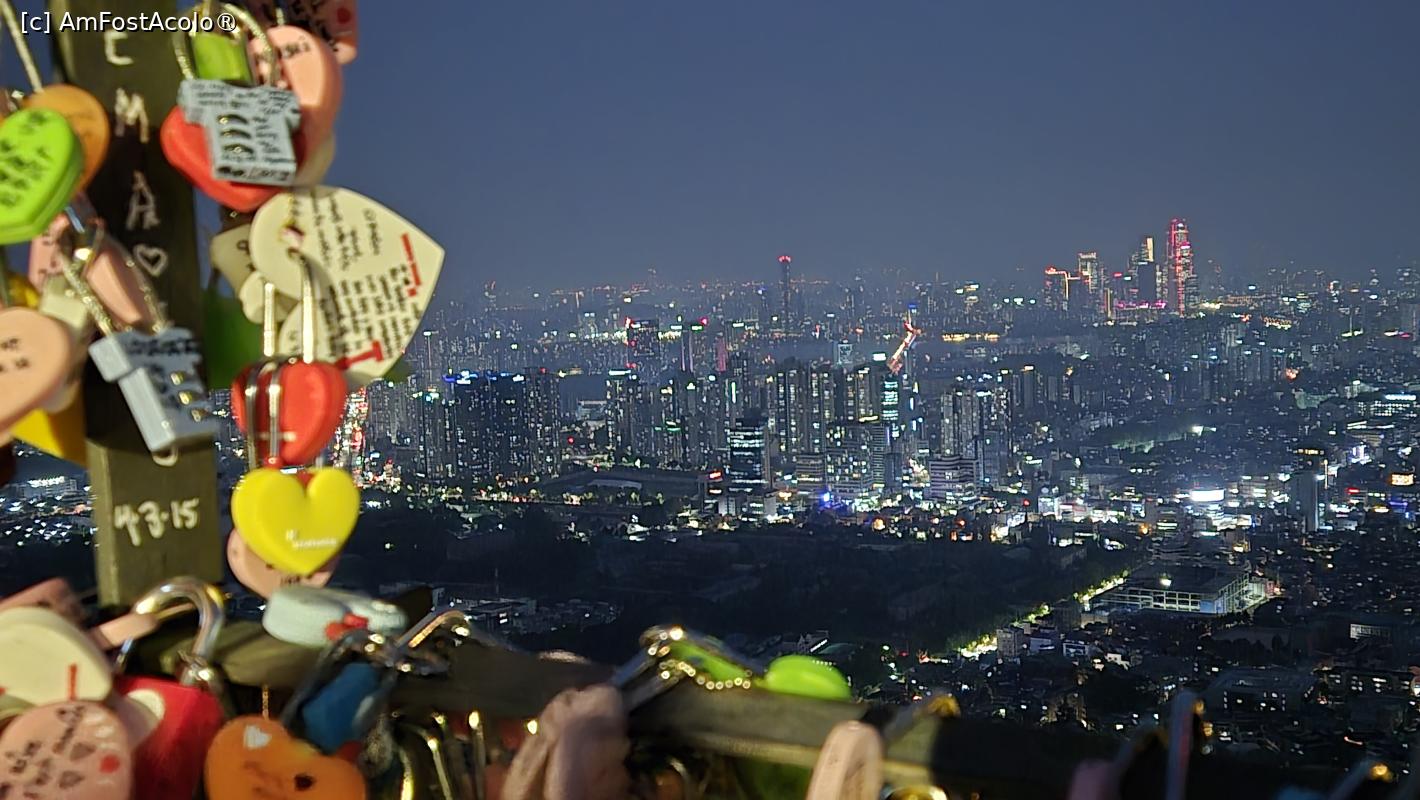 Cazarea aleasa de noi in Seul a fost in apropierea muntelui Namsan, unde se afla Turnul N Seoul, pe care il vedeam in fiecare zi la plecarea si la sosirea in hotel, astfel ca ne-am propus sa ajungem si mai aproape de el, cu atat mai mult cu cat este una dintre cele mai populare atractii turistice din oras. Am profitat de vremea foarte frumoasa, cerul senin si calmul atmosferic, pentru a avea cea mai buna panorama asupra orasului.