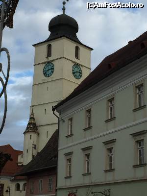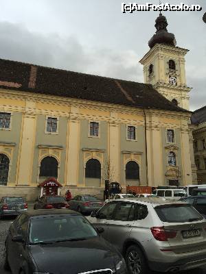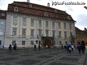 Am trecut printre Primarie si Muzeul National Brukenthal pe de o parte si biserica romano-catolica pe de alta ca sa facem un prim wow! scos pe patru voci la intrarea in Piata Mare. Foarte frumos primul cadru! Magie!