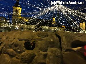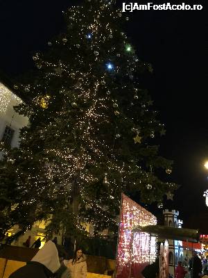 Bradul de Craciun. Un brad inalt de 19 metri domina impunator Piata Mare. Ornat frumos, dar simplu, cu beculete si globuri mari, priveste de la etajele sale cu ace verzi cum se bucura copii, adultii de venirea sarabatoirilor de iarna.