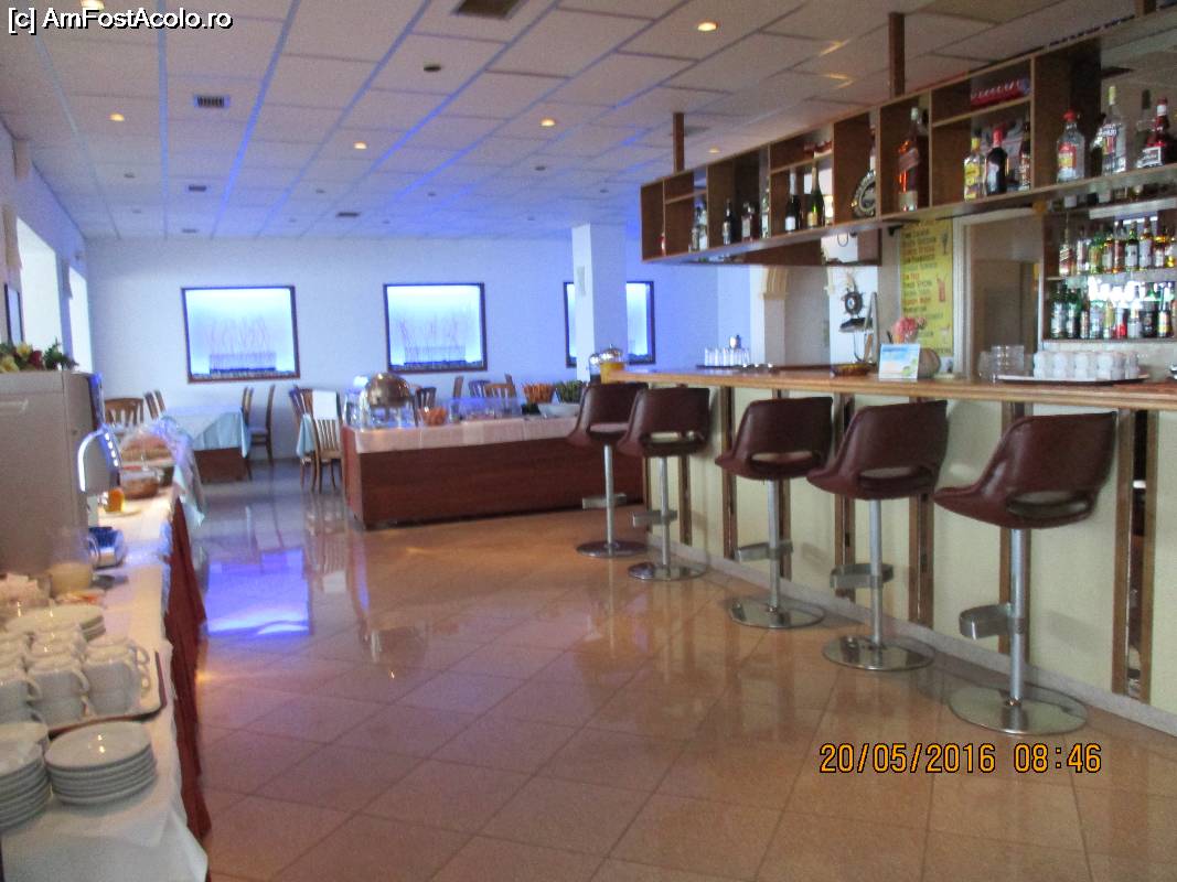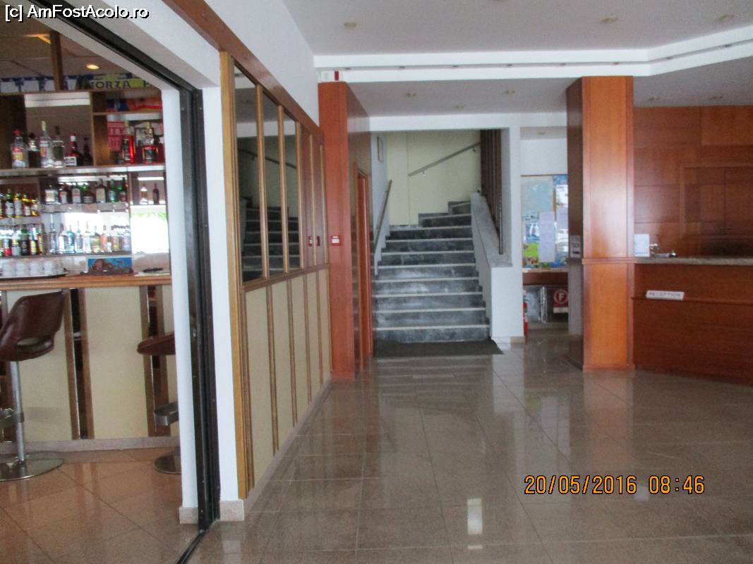 [P08] Receptia, scara și usa catre lift vazute de la bar.