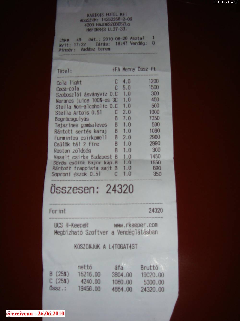 [P19] Restaurantul Karikas - nota de plată.