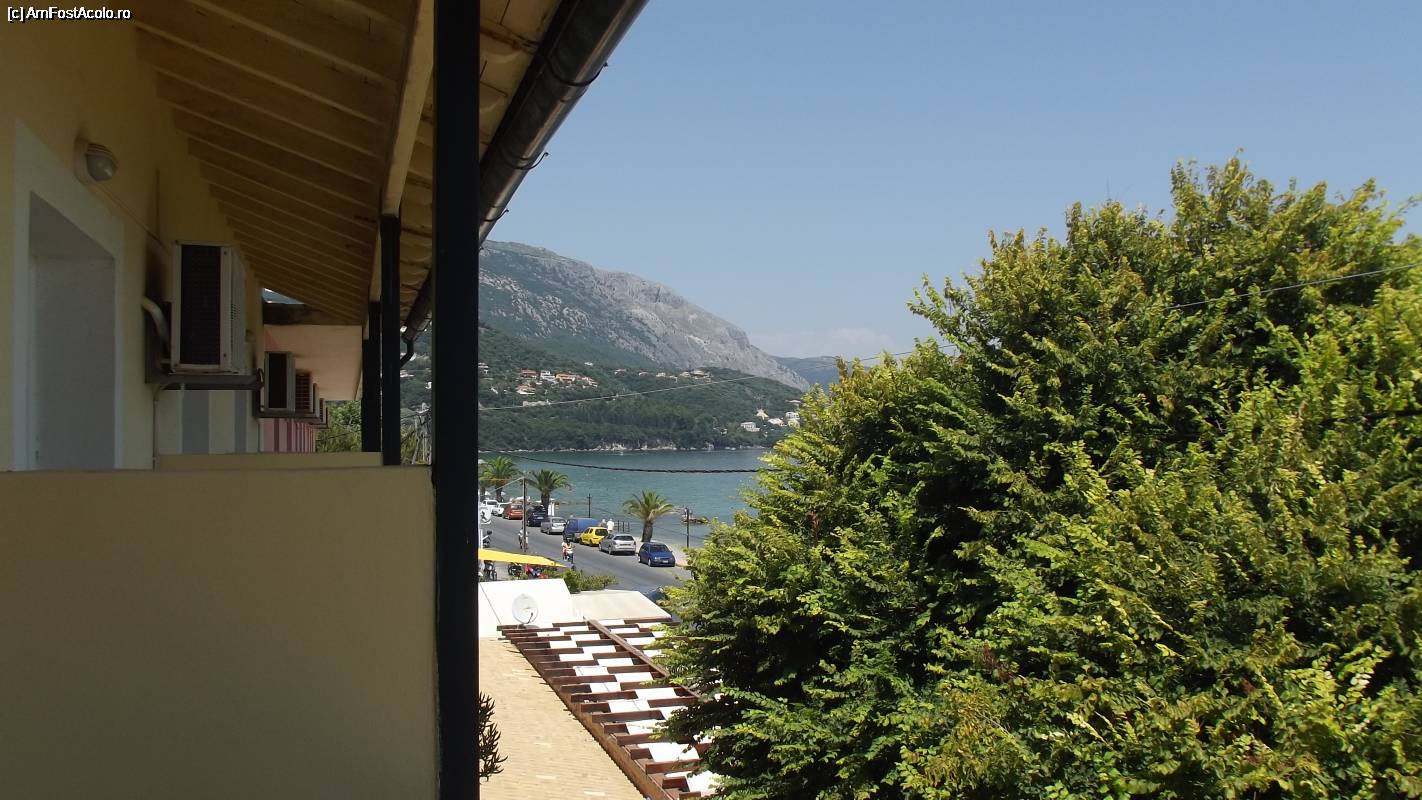 [P02] Vedere din balcon spre partea de sud a staţiunii, dincolo de peninsula din plan îndepărtat se află staţinea Dassia.