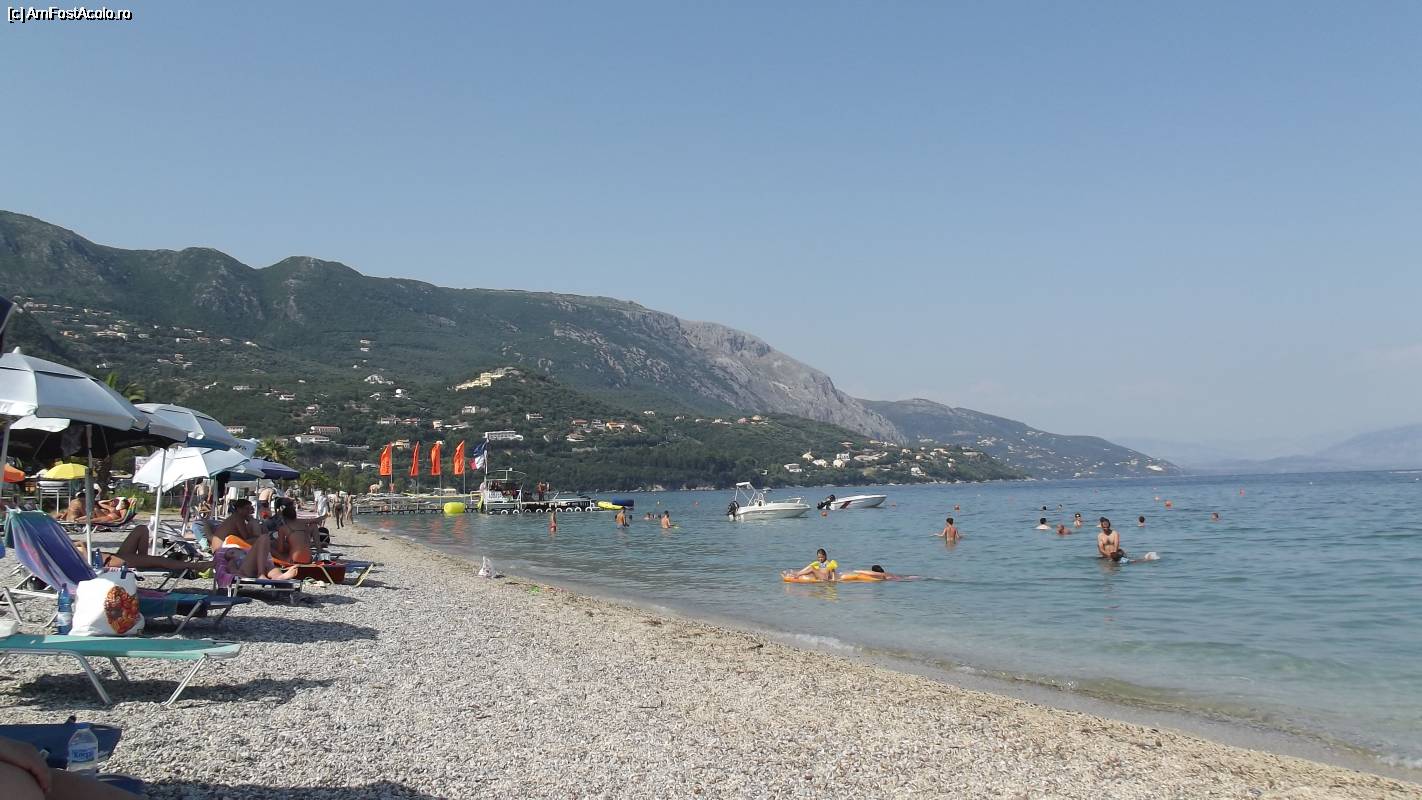 [P03] Plaja din faţa hotelului şi în plan îndepărtat, satul Pirgi, după care urmează plaja Barbati, pe direcţia nord faţă de Ipsos.