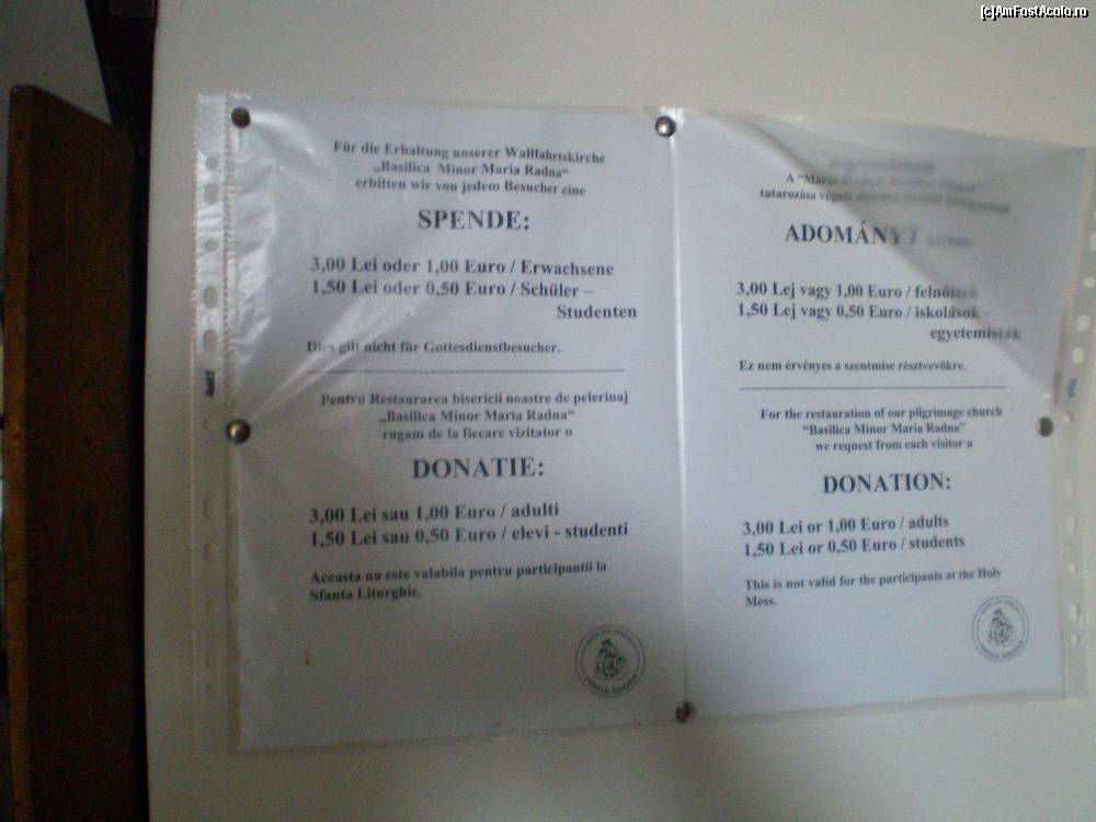 [P20] Manastirea Maria Radna - taxa de "donatie"