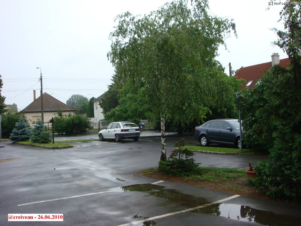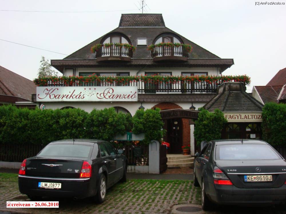 [P01] Restaurantul Karikas ( Etterem ) - parcarea din strada Hőforrás şi intrarea-n restaurant din stradă.