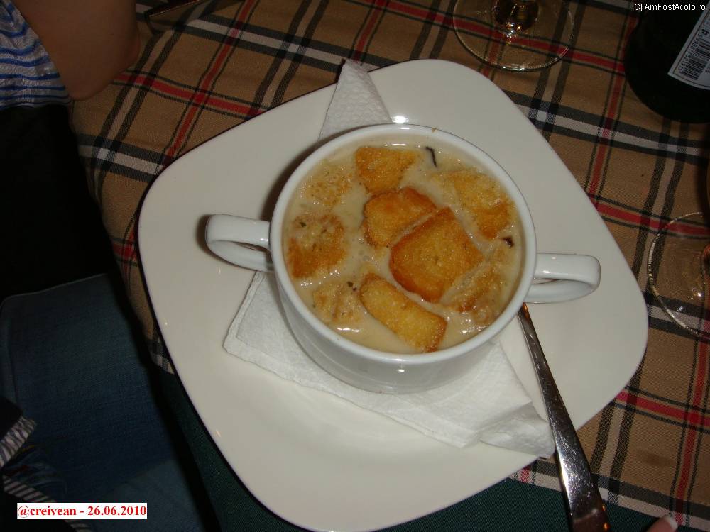 [P07] Restaurantul Karikas - supa cremă de ciuperci cu crutoane.